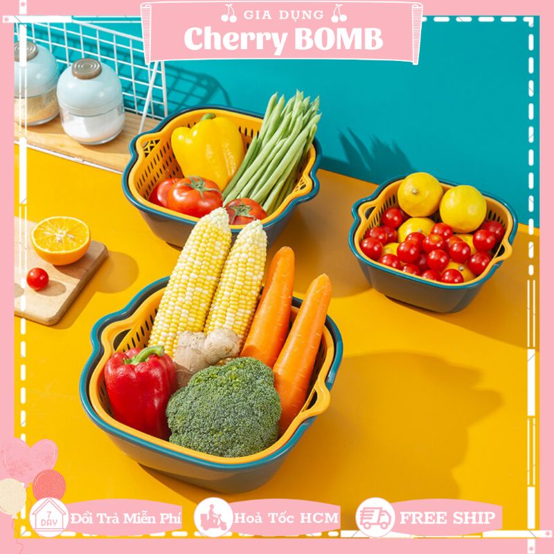 Giới thiệu (Set 6 món) Combo rổ chậu nhựa Hình Vuông 6 món, ❌Freeship❌ Có tai rót nước, Tai cầm tiện lợi
