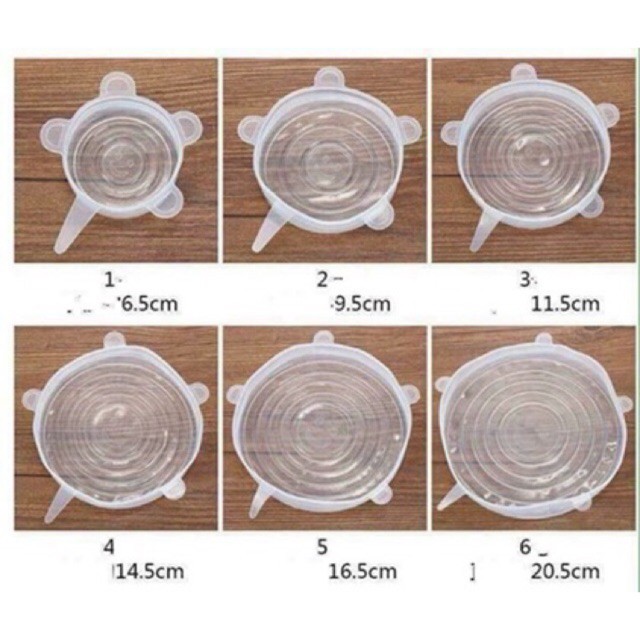 - Một set gồm 6 nắp kích thước từ bé đến lớn, đảm đảo có thể đậy được từ bát nhỏ đến bát lớn, cực kín , cực khít.