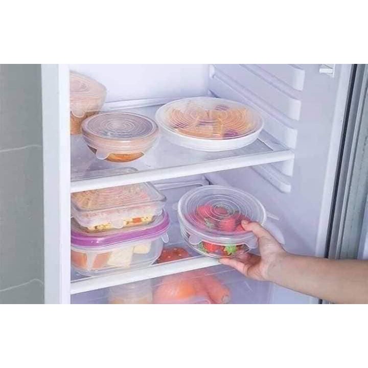 💥1 bộ nắp gồm 6 nắp bọc, nhựa silicon Sử Dụng Được Trong Lò Vi Sóng, máy rửa bát..., có thể kéo giãn để phù hợp với mọi kích cỡ.