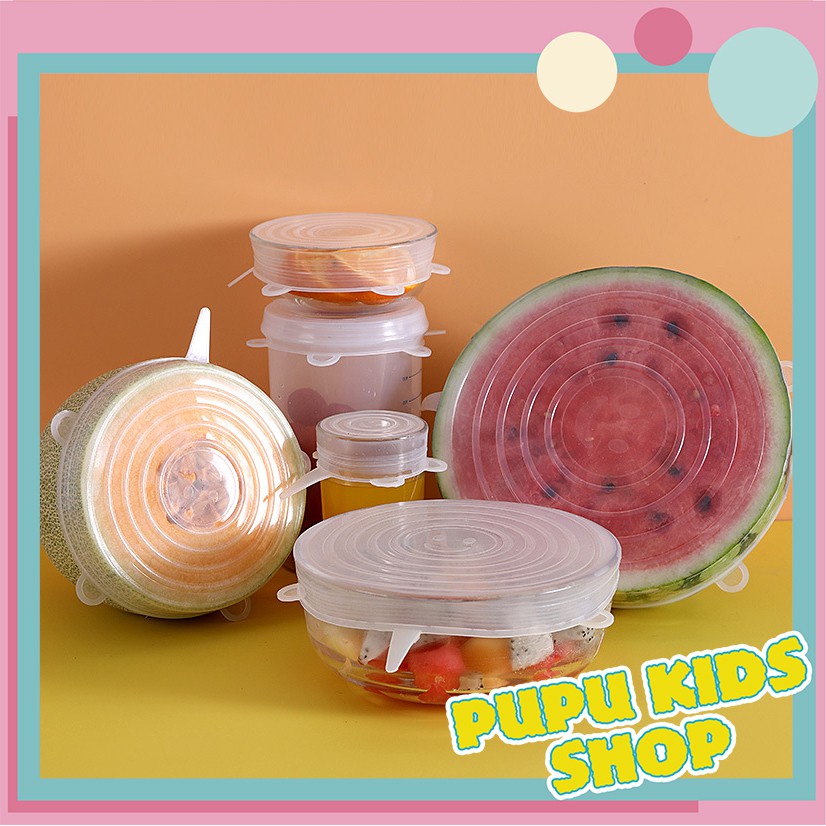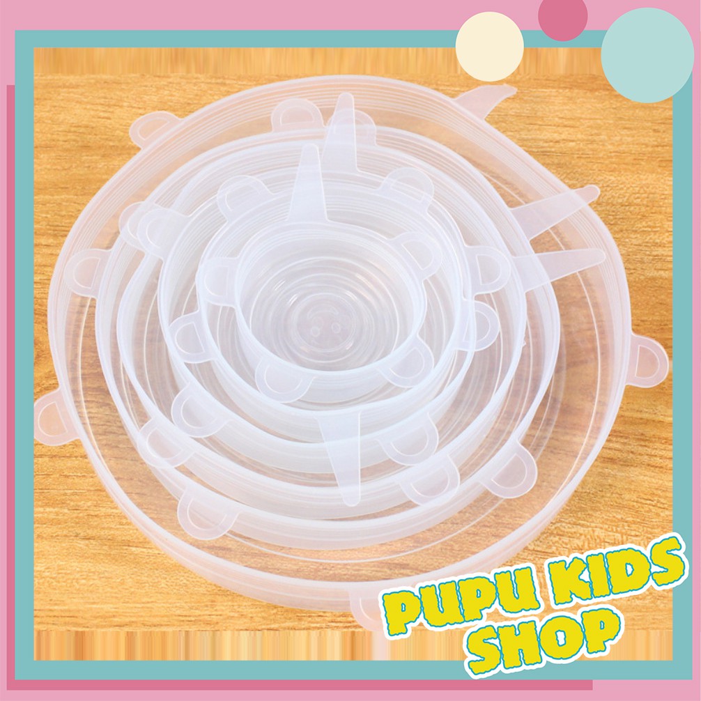 Set 6 Nắp Silicon Co Giãn Bảo Vệ Thực Phẩm - Che Đậy Đồ Ăn Hoa Quả - Màng Bọc Thực Phẩm Silicon Tái Sử Dụng Được