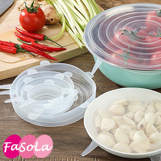 Giới thiệu SET 6 nắp silicon dẻo trong suốt bảo quản thực phẩm, nắp đậy thức ăn tiện dụng FASOLA