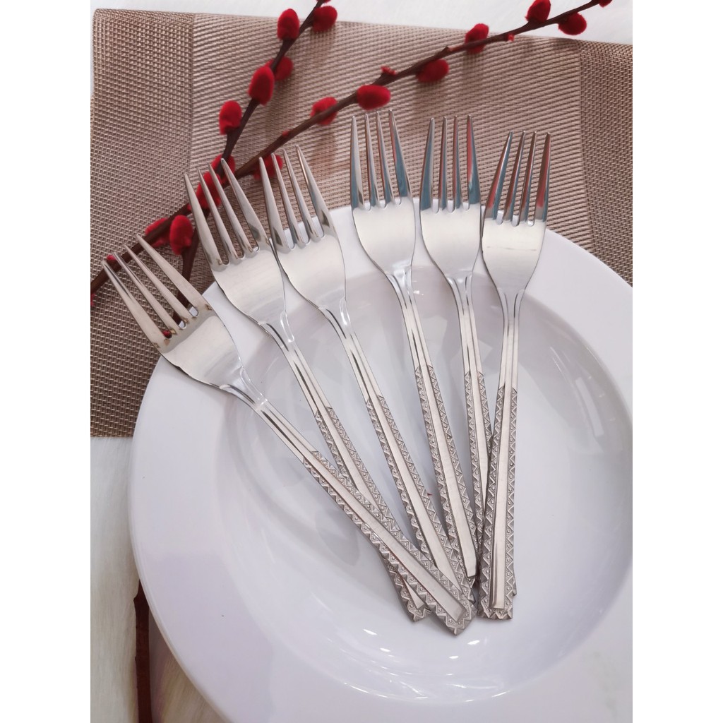 Set 6 nĩa ăn inox 304 kiểu dáng caro.