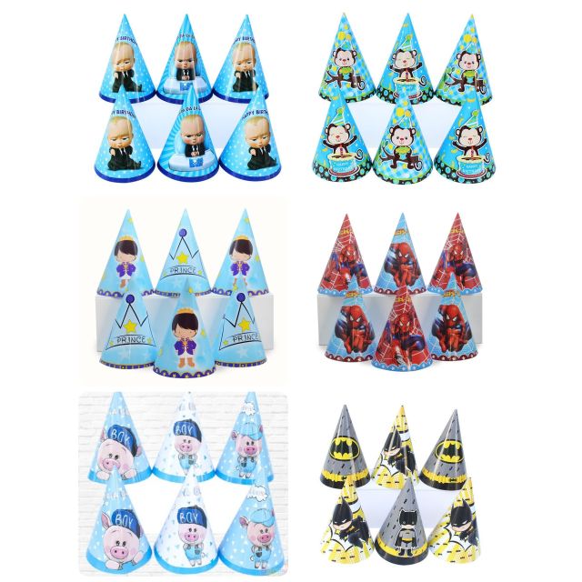 Set 6 nón (mũ ) sinh nhật cho bé trai và bé gái.
