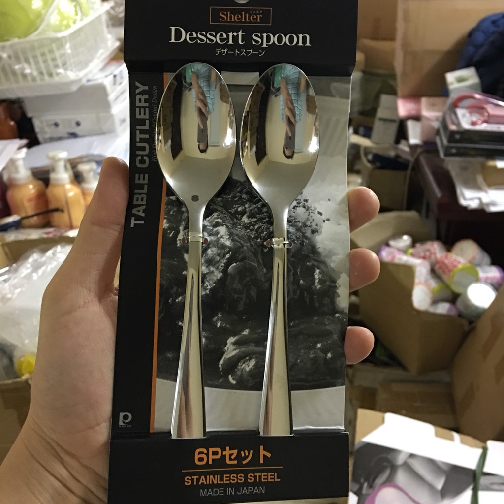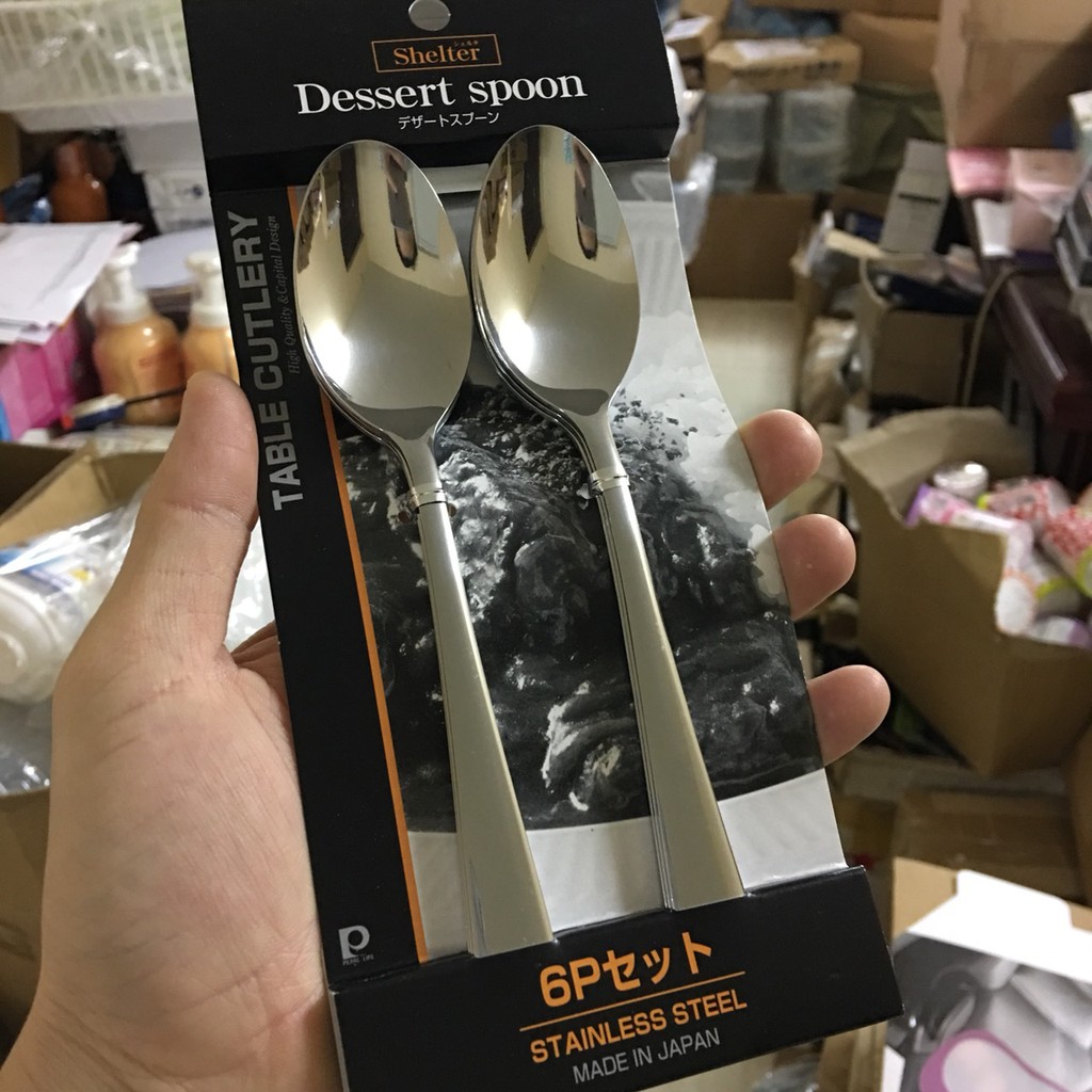 Giới thiệu Set 6 thìa inox cỡ to Shelter Nhật Bản chiều dài 13cm, inox cao cấp sáng bóng không gỉ