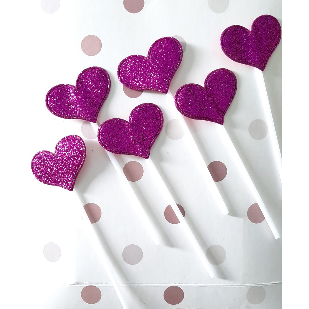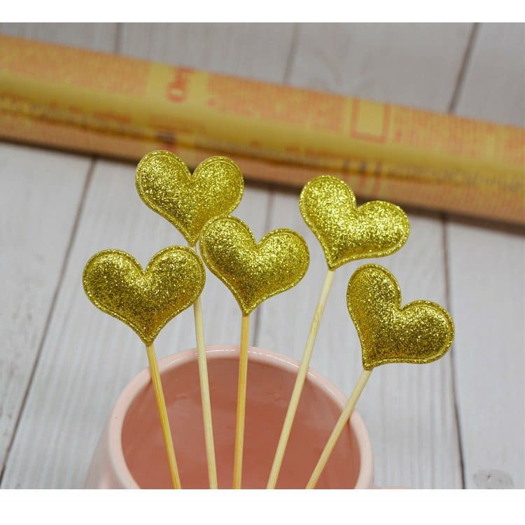 Nhà cửa & Đời sống > Dụng cụ nhà bếp > Dụng cụ nướng & trang trí bánh || Set 6 topper trái tim trang nhũ kim tuyến trí bánh sinh nhật, bánh kem, bánh cupcakeCòn hàng