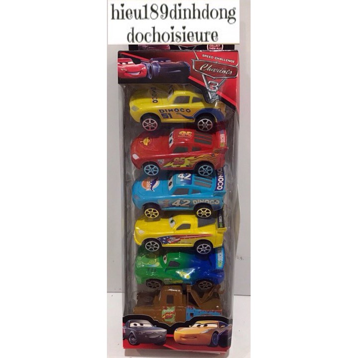 Bộ sản phẩm gồm 6 xe với 6 màu khác nhau xe dài tầm 9-10cm. Xe to giá rẻ nên nước sơn có thể hơi xước quý khách lưu ý trước khi muaSản phẩm được làm theo bộ phim nổi tiếng Vương Quốc Xe Hơi 3 của hãng Disney