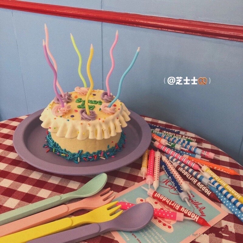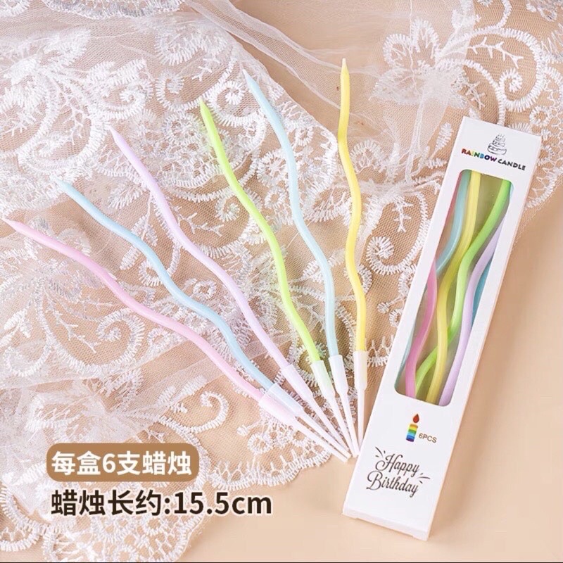 Set 6c nến xoắn màu pastel cầu vồng cắm bánh sinh nhật hàn quốc