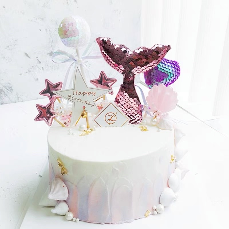 Set 7 đuôi cá bé kim sa trang trí bánh