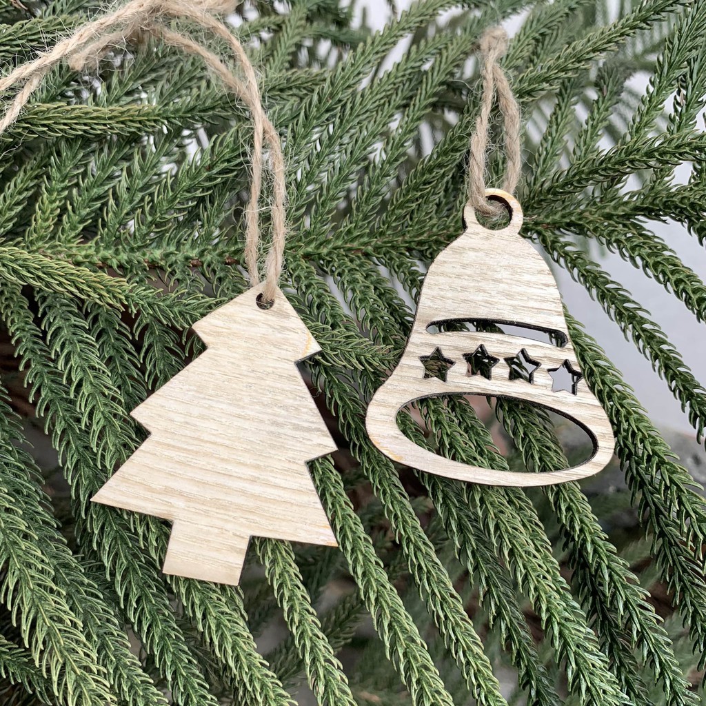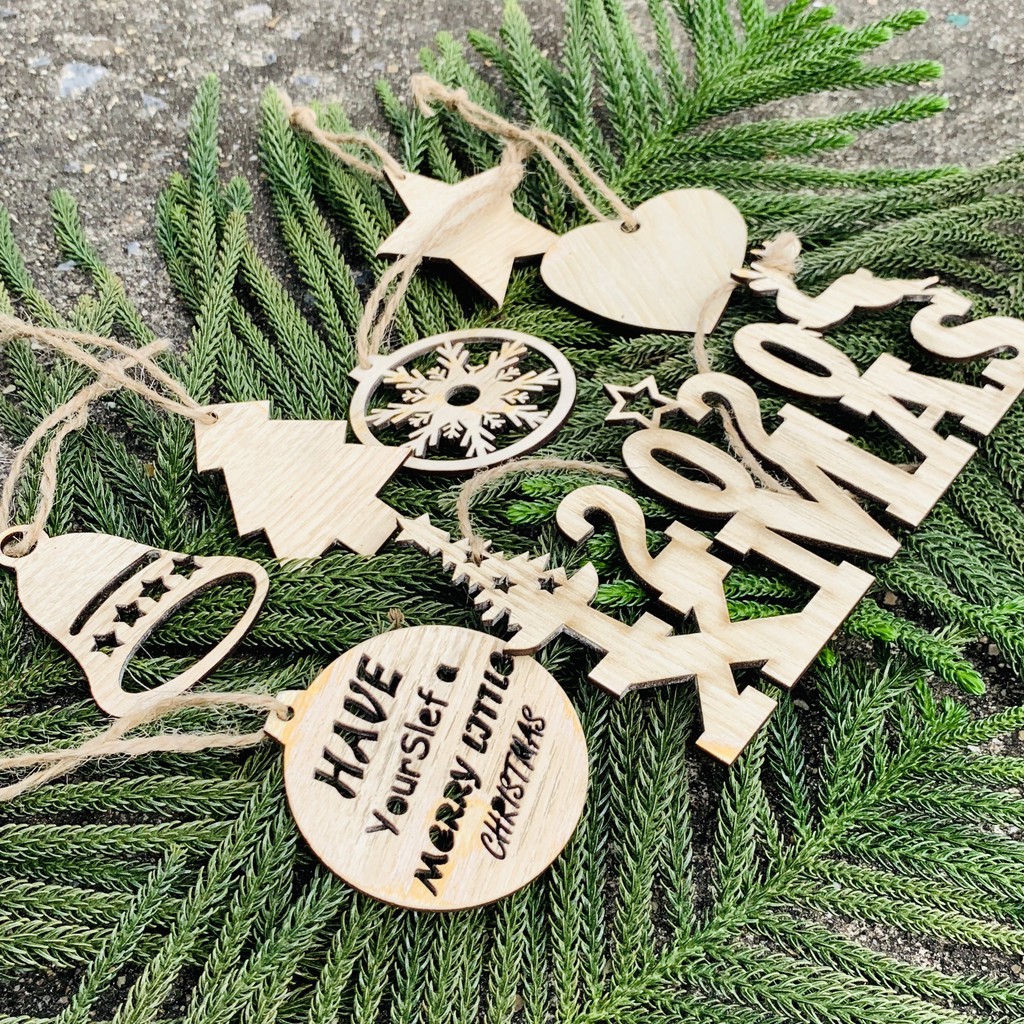 Set 7 Món Đồ Trang Trí Cây Thông Noel, Phụ Kiện Trang Trí Nhà Cửa Bằng Gỗ Mộc An Toàn