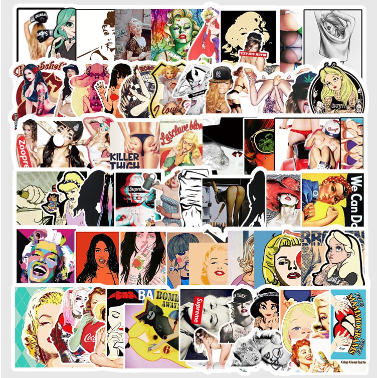 Giới thiệu [Set 71 Cái] Sticker dán mũ bảo hiểm, laptop in hình người đẹp nổi tiếng, sexy - DB.075