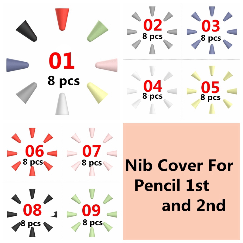 Set 8/ 5 nắp silicon bảo vệ ngòi thay thế cho bút viết trên màn hình cảm ứng Apple 1st và 2nd