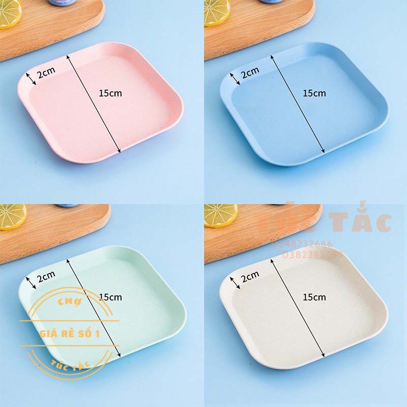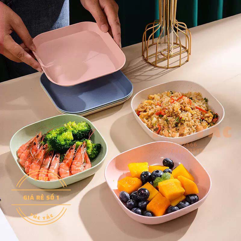 666Set 8 đĩa lúa mạch màu pastal siêu xinh, đĩa lúa mạch hình vuông đựng thức ăn, hoa quả, bánh kẹo