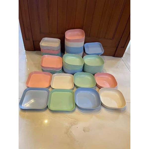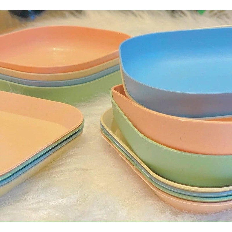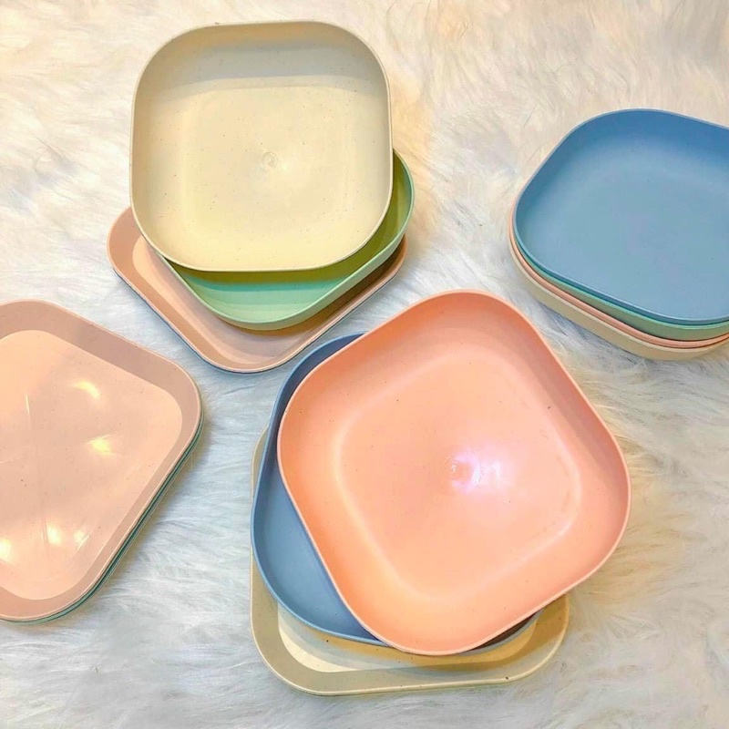 Nhà cửa & Đời sống > Bộ đồ bàn ăn > Dĩa || Sét 8 đĩa lúa mạch 4 nông 4 sâu kiểu mới ( mix 5 màu cực xinh) đĩa vuông size 14,5cmCòn hàng