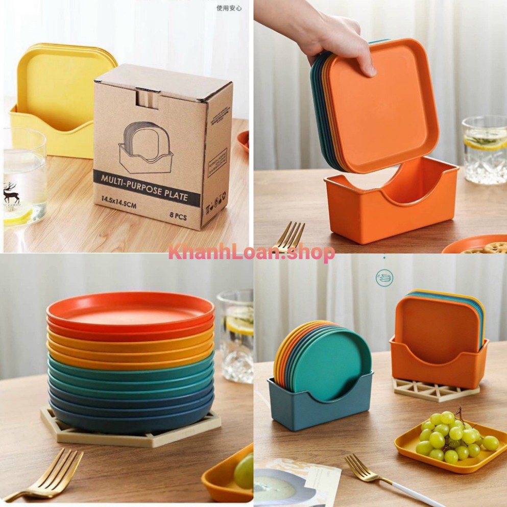 Nhà cửa & Đời sống > Bộ đồ bàn ăn > Khay, tấm lót bàn ăn || Sét 8 đĩa lúa mạch cao cấp tặng kèm khay đựngCòn hàng
