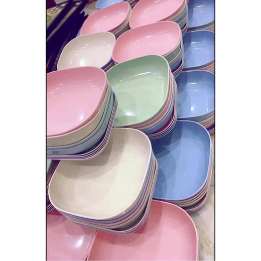 Combo 8 Khay Đĩa Vuông Đựng Thức Ăn Màu Pastel Gồm 2 Cỡ Chất Liệu Nhựa Lúa Mạch Nhựa PP Thực PhẩmNăm ngoái gom tròn roài, năm nay e gom vuông cũng xinh đẹp không kém cạnh nha các chị em ơiii