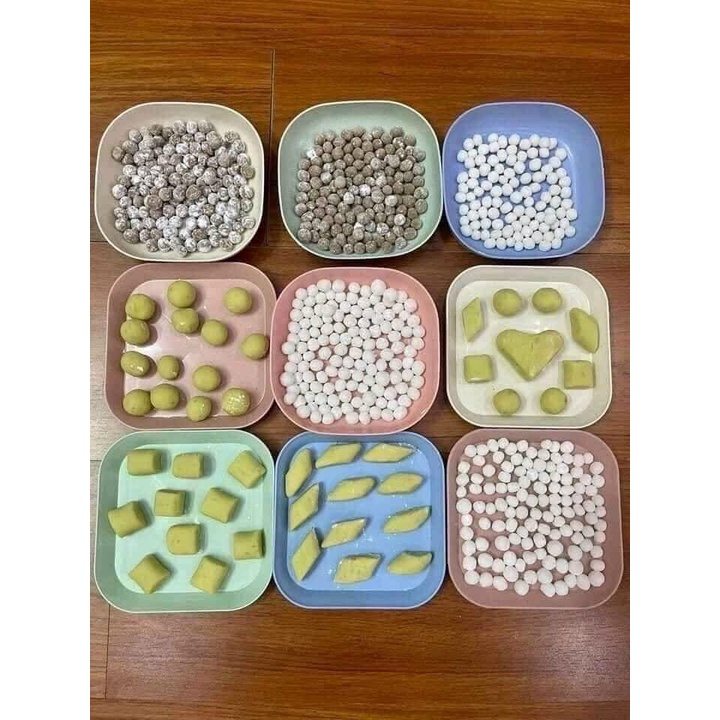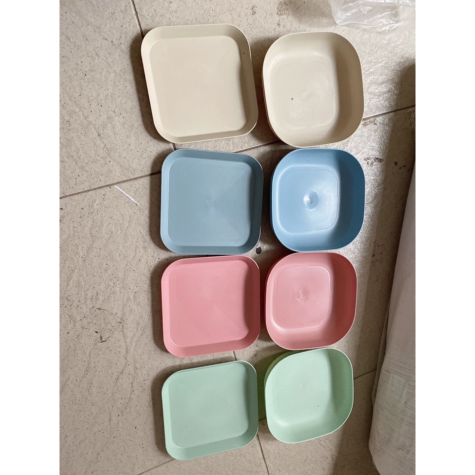 Set 8 đĩa lúa mạch màu pastal siêu xinh, đĩa lúa mạch hình vuông đựng thức ăn, hoa quả, bánh kẹoĐặc điêm nổi bật: