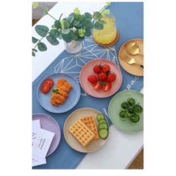 - Bộ sản phẩm đĩa lúa mạch gồm 8 chiếc đủ nhiều màu: Xanh dương, xanh lá, hồng và màu kem...