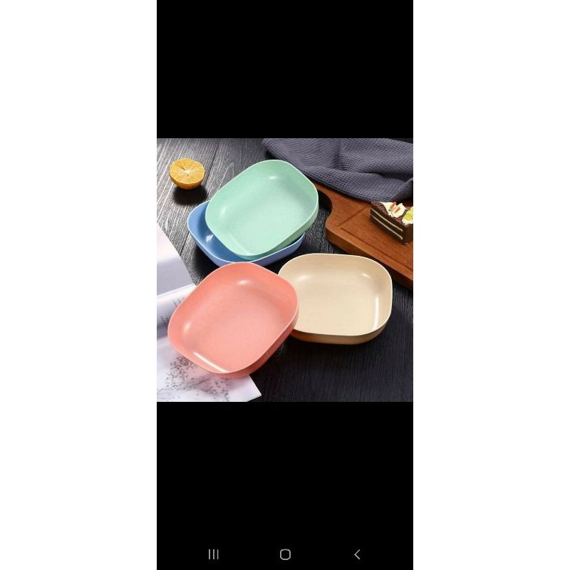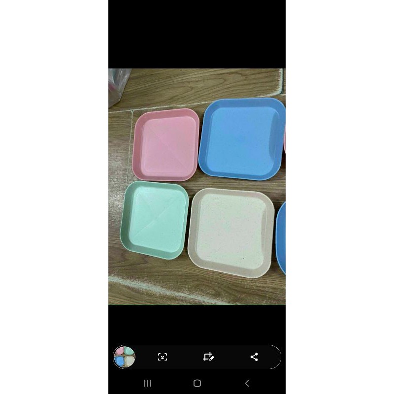 ☘màu pastal siêu xinh, đĩa lúa mạch hình vuông đựng thức ăn, hoa quả, bánh kẹo