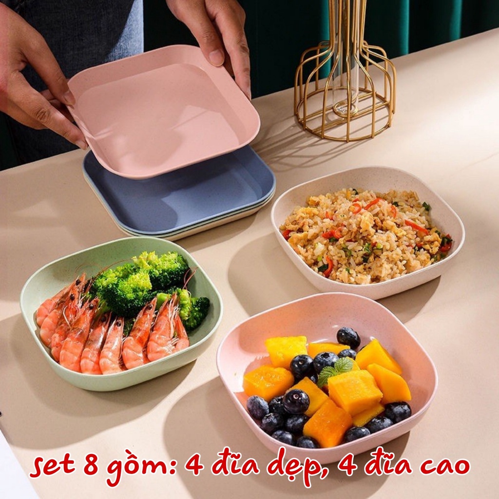 Nhà cửa & Đời sống > Bộ đồ bàn ăn > Dĩa || Set 8 Đĩa Nhựa Lúa Mạch Đựng Thức Ăn Mà Sắc Patel An Toàn Tiện DụngCòn hàng