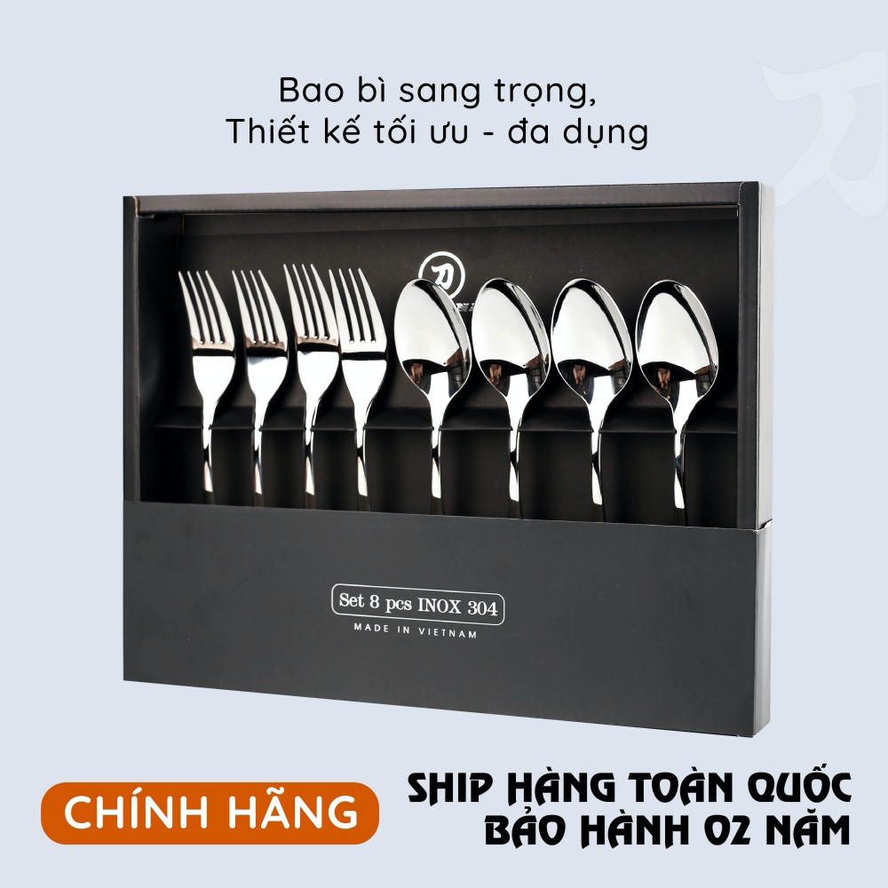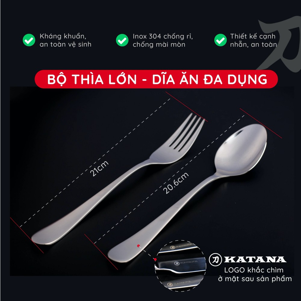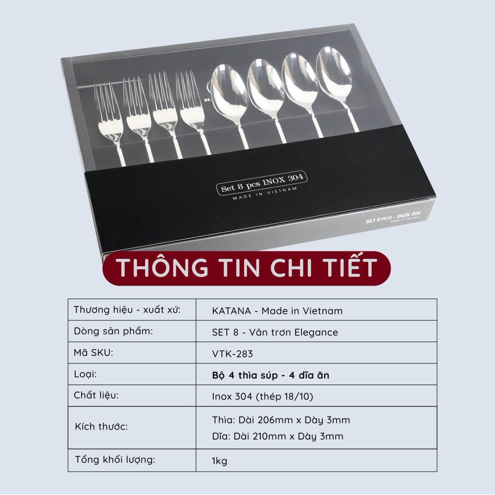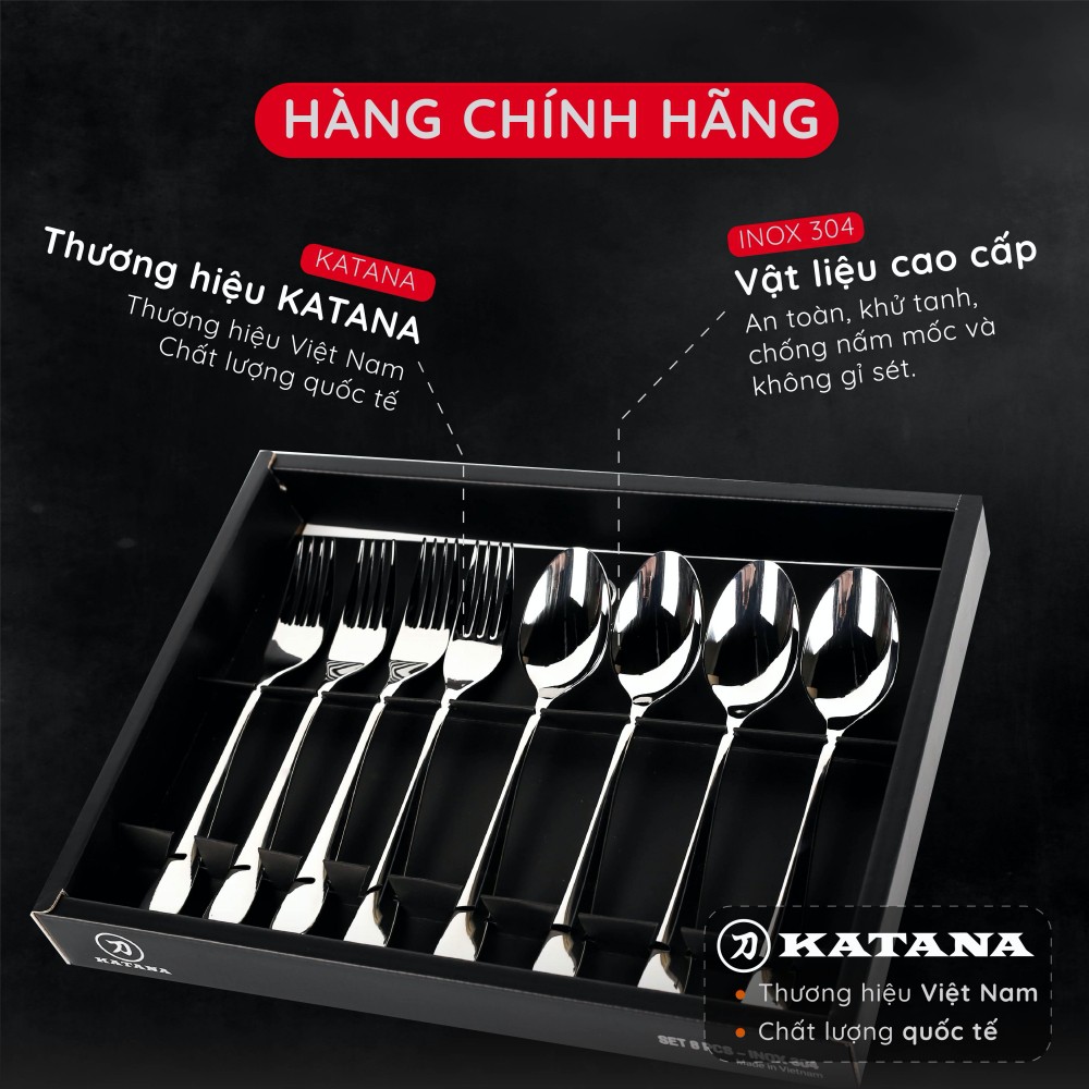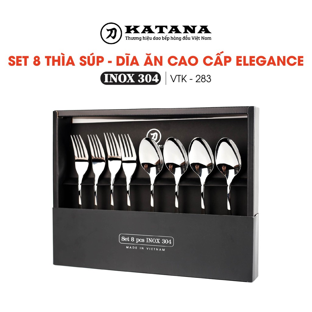 Nhà cửa & Đời sống > Bộ đồ bàn ăn > Bộ dao kéo || Set 8 món bàn ăn cao cấp inox 304 KATANA (4 thìa súp + 4 dĩa ăn) - chống bám vân tay Elegance - VTK283Còn hàng