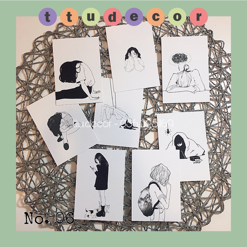 Nhà cửa & Đời sống > Trang trí nhà cửa > Khác || Set 8 tấm postcard cô gái buồn decorCòn hàng