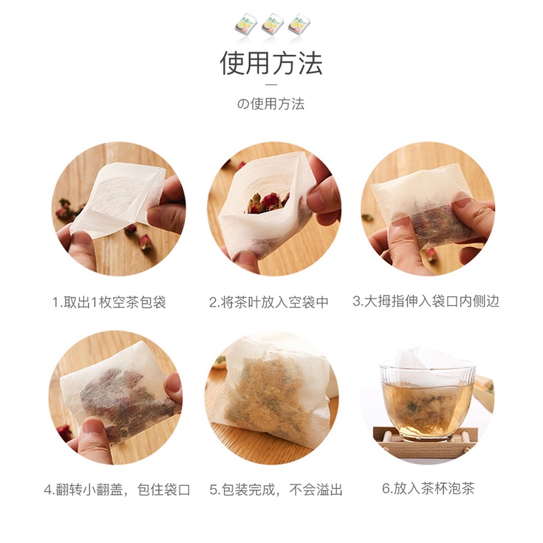 HƯỚNG DẪN SỬ DỤNG: Cho trà/ cà phê vào túi. Cho 2 ngón tay cái vào phần viền phía trên, lật ngược lại để tạo thành nắp đậy.