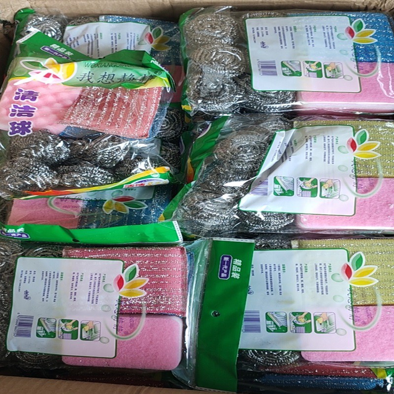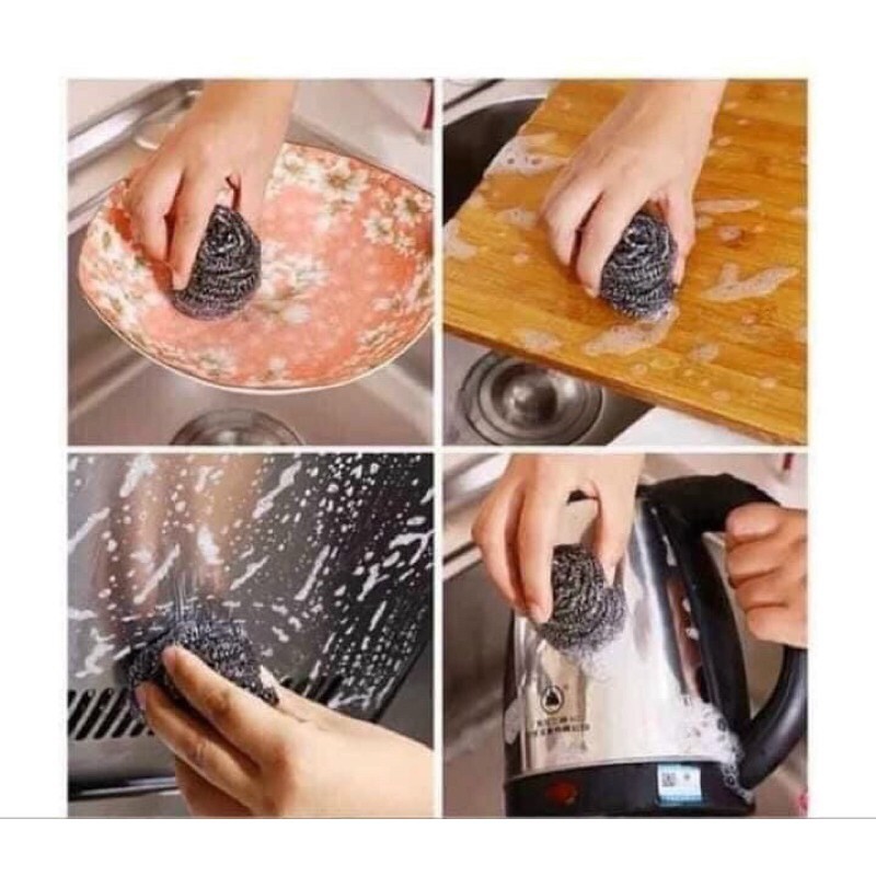 gói hàng bao gồm 6 miếng cọ sắt và 3 miếng mút rửa bát