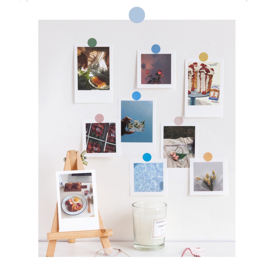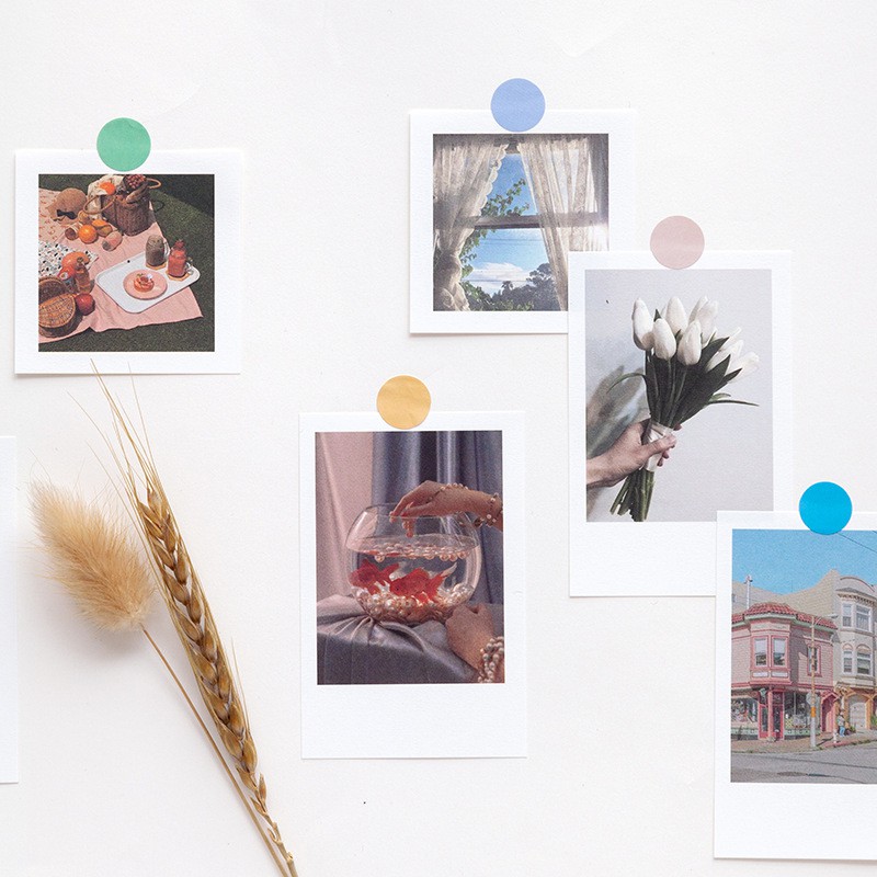 Set Ảnh Polaroid Trang Trí Nhiều Chủ Đề Kèm Sticker Chấm Tròn Trang Trí Bullet Journal/ Góc Học Tập/ Điện Thoại