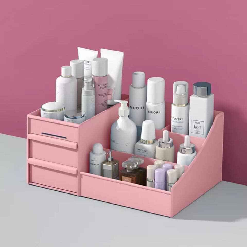 Thường ngày để mỹ phẩm lung tung ko quy củ nên tìm cứ loạn xạ cả ra, chị em cứ bỏ hết trên kệ này nha. Mọi người muốn làm đẹp bàn trang điểm của mình thì cũng nên sắmm 1 em lắm ạ