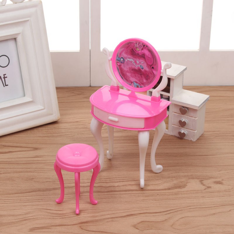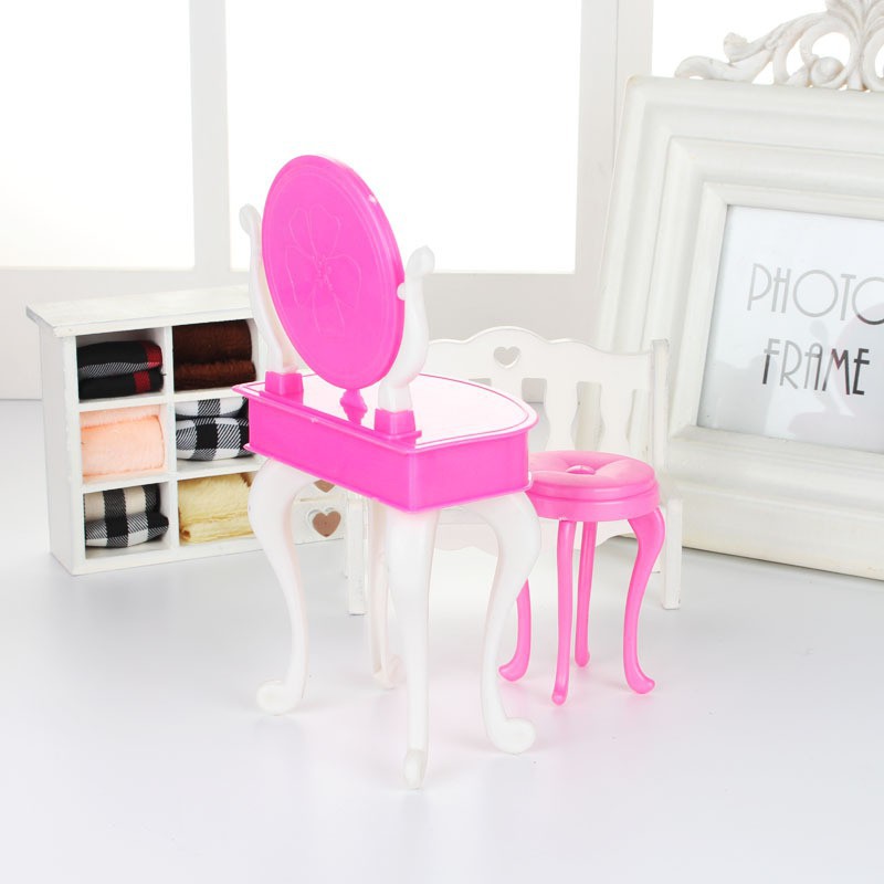 Set bàn trang điểm gương tròn phụ kiện búp bêChất liệu nhựa