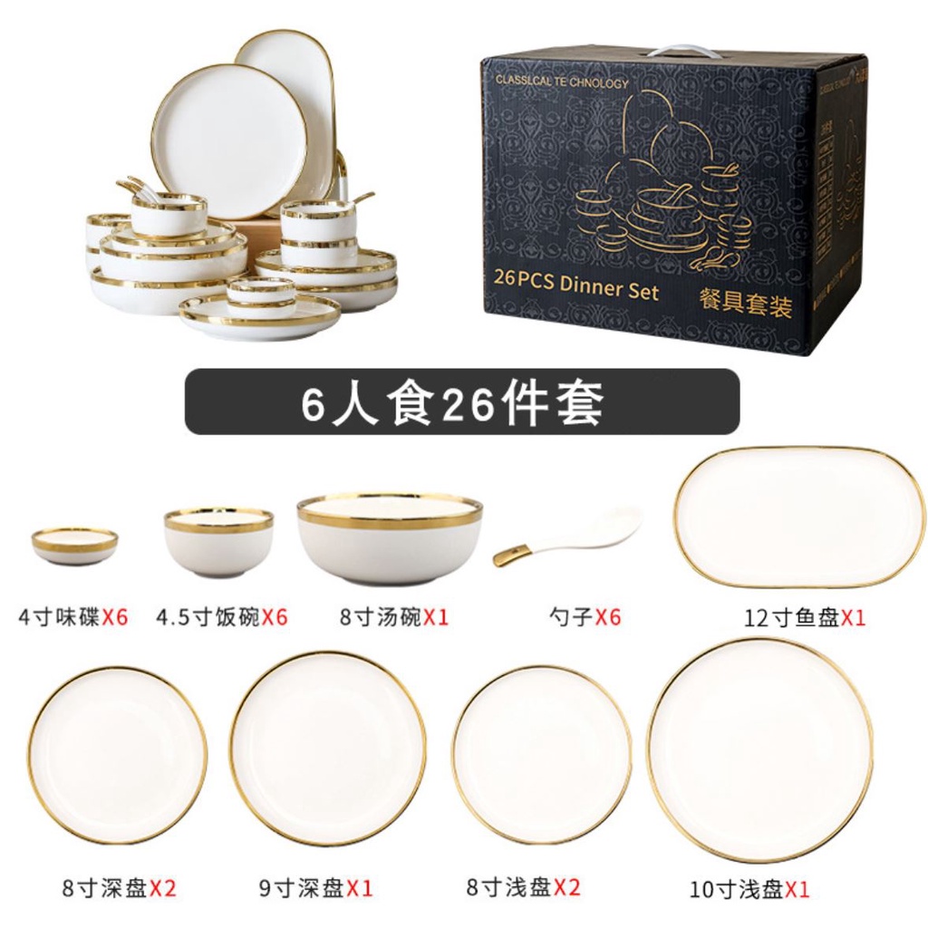 Nhà cửa & Đời sống > Bộ đồ bàn ăn > Dĩa || set bát 26 món. Bát đĩa 26 món. set bát đĩa 26 món màu trắng viền vàng sang trọng. Bộ chén đĩa đẹpCòn hàng