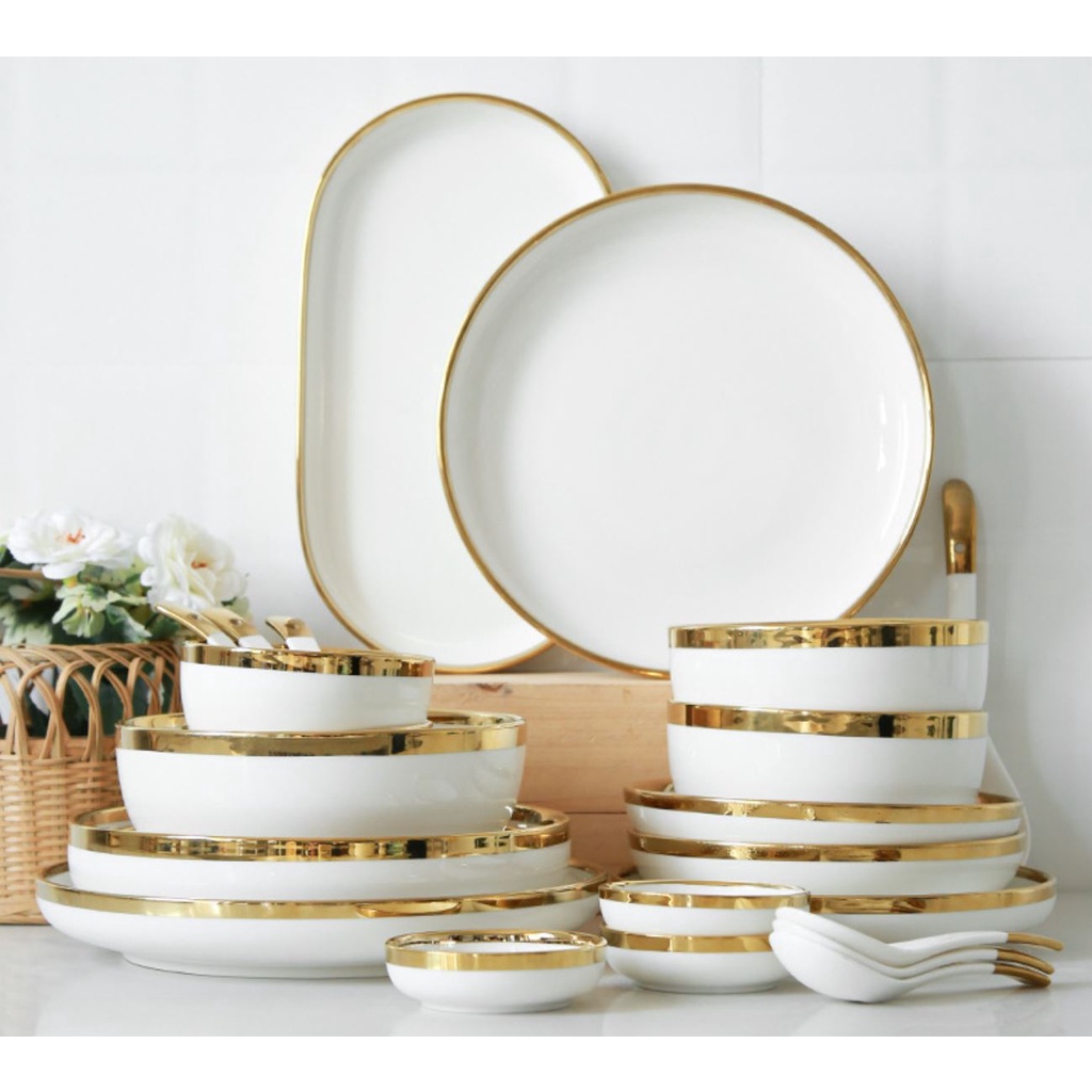 Nhà cửa & Đời sống > Bộ đồ bàn ăn > Dĩa || set bát 26 món cao cấp bán lẻ. bát con. bát con trắng viền vàng. bát ăn cơmCòn hàng
