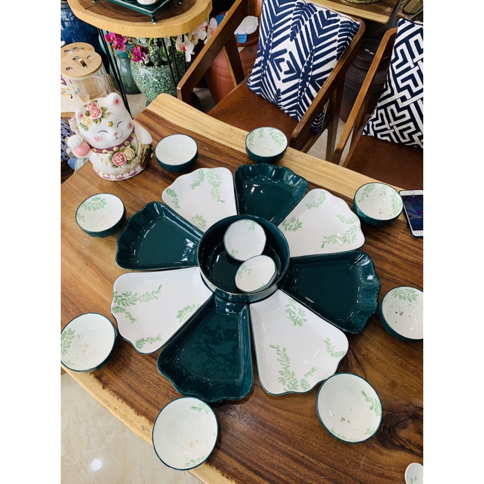 set bát 26 món lá me . bộ bát đĩa cho 6 người. set bát đĩa cho gia đình. bộ bát đĩa 26 chi tiết phong cách Bắc Âu