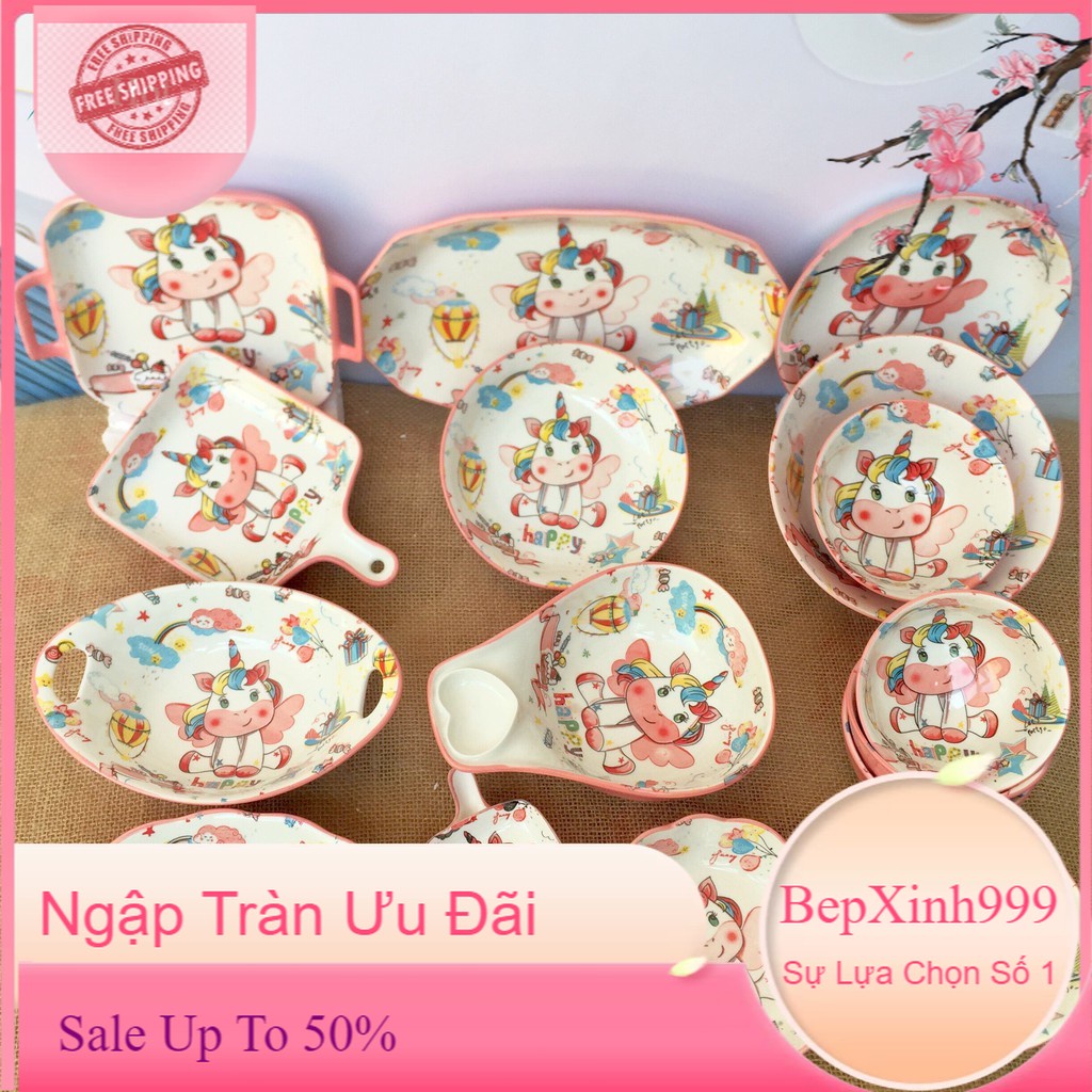 Nhà cửa & Đời sống > Bộ đồ bàn ăn > Dĩa || Set Bát Ăn Cơm Bộ Bát Đĩa Sứ🦄🦄🦄 Pony Hồng🦄🦄🦄 Dễ Thương Decor Chén Dĩa Cute Cao Cấp B92Còn hàng