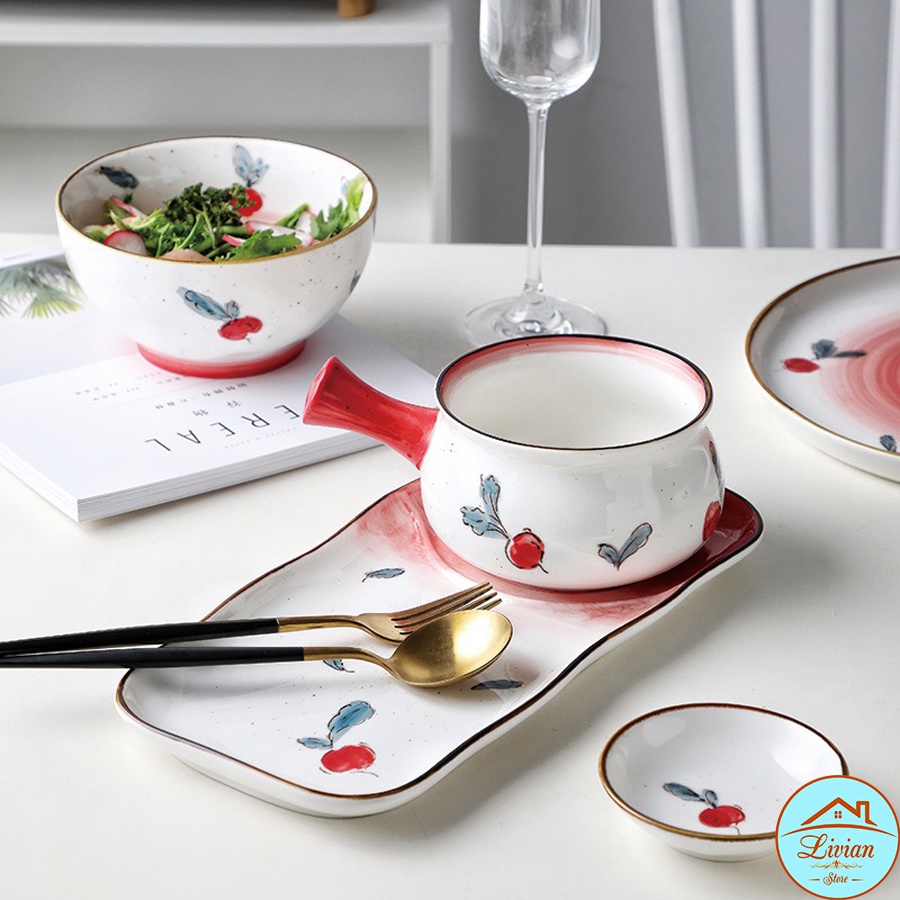 Nhà cửa & Đời sống > Bộ đồ bàn ăn > Dĩa || Sét bát ăn sáng có tay cầm kèm đĩa đựng, bát đĩa decor họa tiết củ cải đỏ cực sangCòn hàng