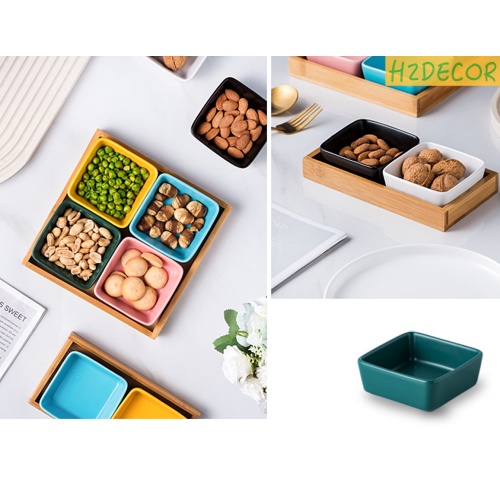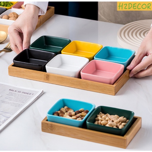 Nhà cửa & Đời sống > Bộ đồ bàn ăn > Tô || Set bát chấm vuông đựng gia vị , nước sốt, bánh kẹo khay tre,phong cách Bắc Âu -H2decorCòn hàng
