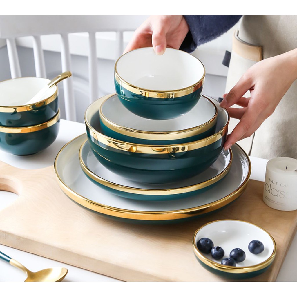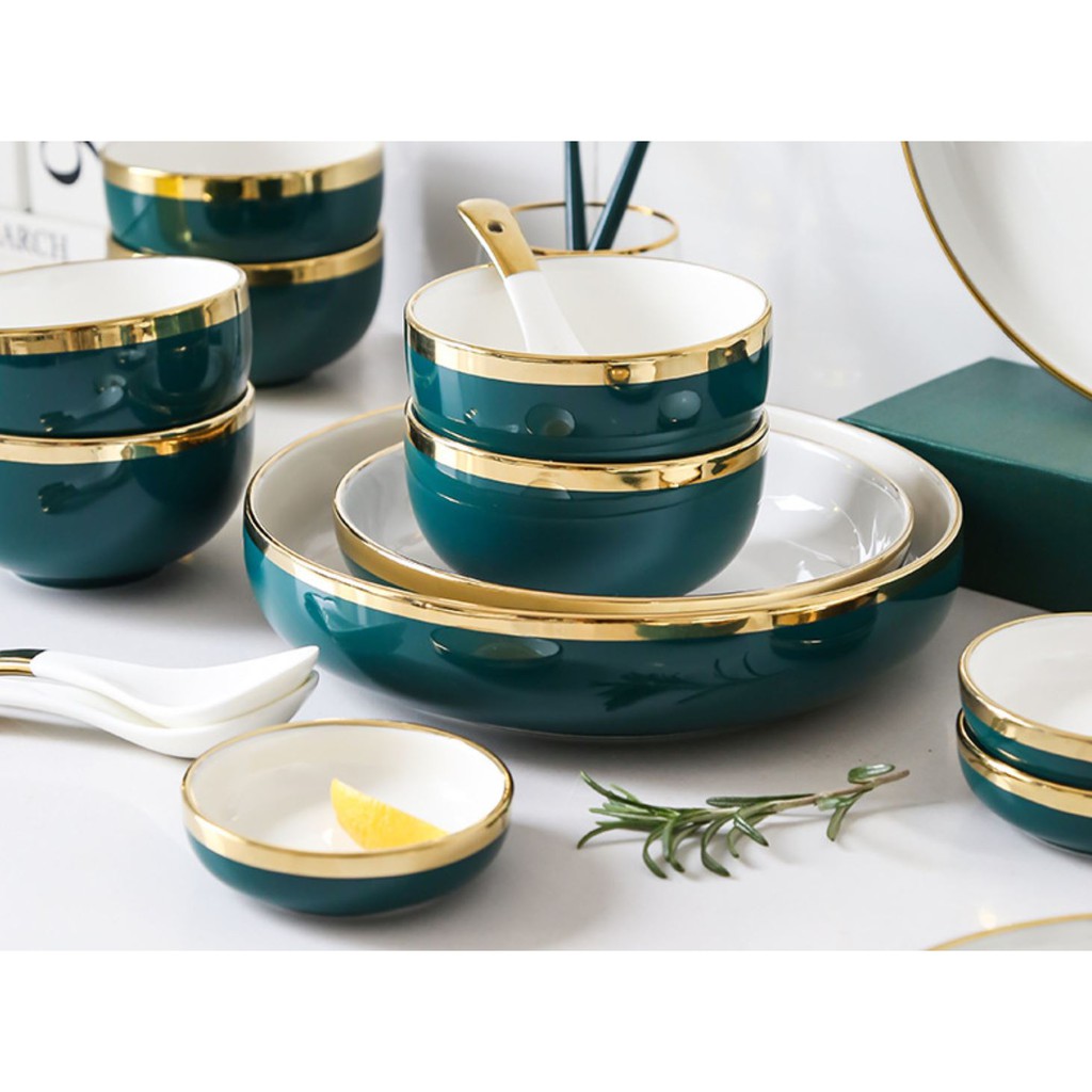 + Bộ bát đĩa được thiết kế sang trọng, hiện đại cùng màu sắc trang nhã, viền mạ vàng nổi bật chắc chắn sẽ tạo thêm sự trang trọng, lịch thiệp cho bàn ăn