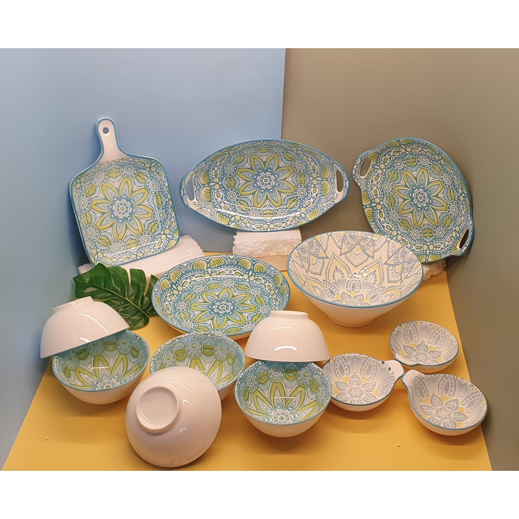 - Set bát đĩa có đầy đủ các món từ bát sứ, tô sứ, đĩa sứ, chảo sứ, bát ăn dặm, khay nướng bánh,... đều đủ cả