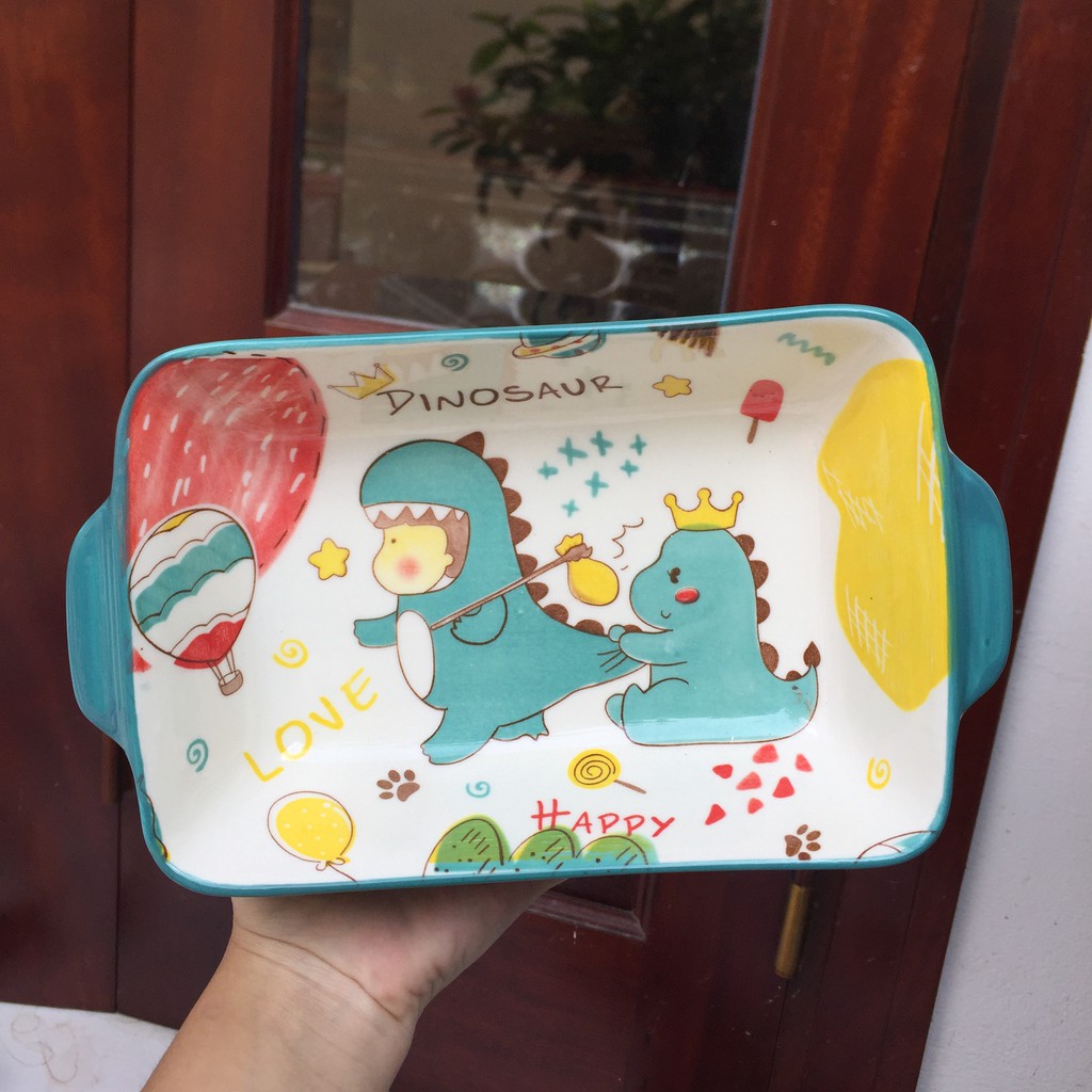 Tên sản phẩm : Set Bát Đĩa Decor 🦖🦖🦕 Khủng Long Xanh🦖🦖🦕 Siêu Dễ Thương Cao Cấp B86- Chất liệu: Gốm Sứ cao cấp