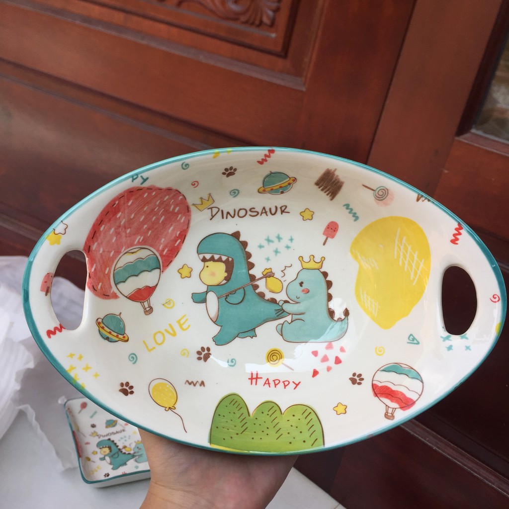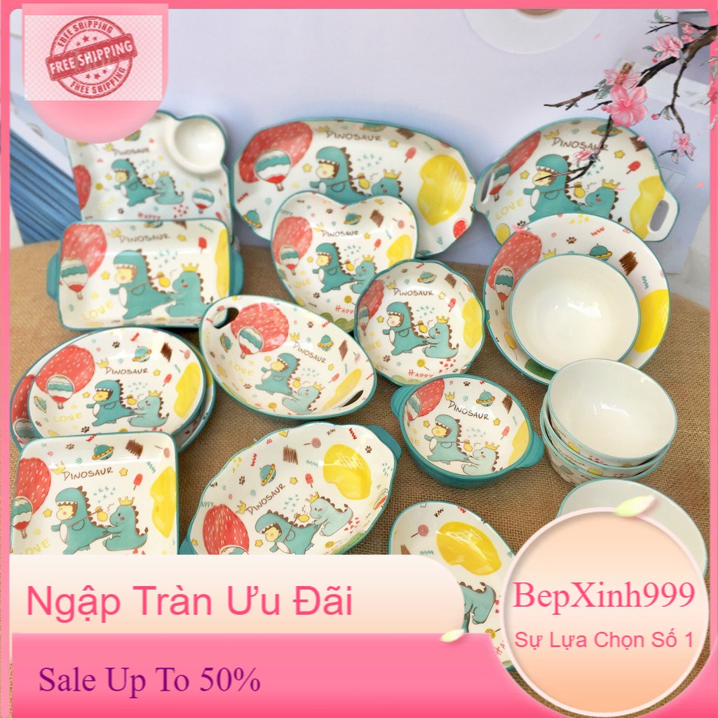 Set Bát Đĩa Decor 🦖🦖🦕 Khủng Long Xanh🦖🦖🦕 Siêu Dễ Thương Cao Cấp B86