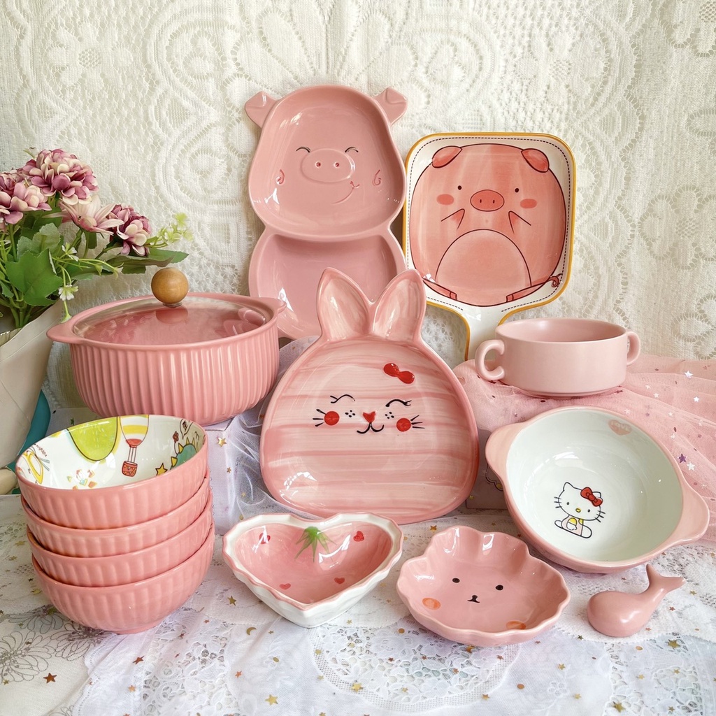 Nhà cửa & Đời sống > Bộ đồ bàn ăn > Tô || Set Bát Đĩa Decor Màu Hồng Bát Ăn Cơm Chén Dĩa Dễ Thương Bát Ăn Dặm Cho Bé Trọn BộCòn hàng