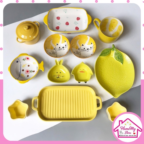Set Bát Đĩa Decor Màu Vàng 12 Món Bát Ăn Cơm Chén Dĩa Dễ Thương Bát Ăn Dặm Cho Bé