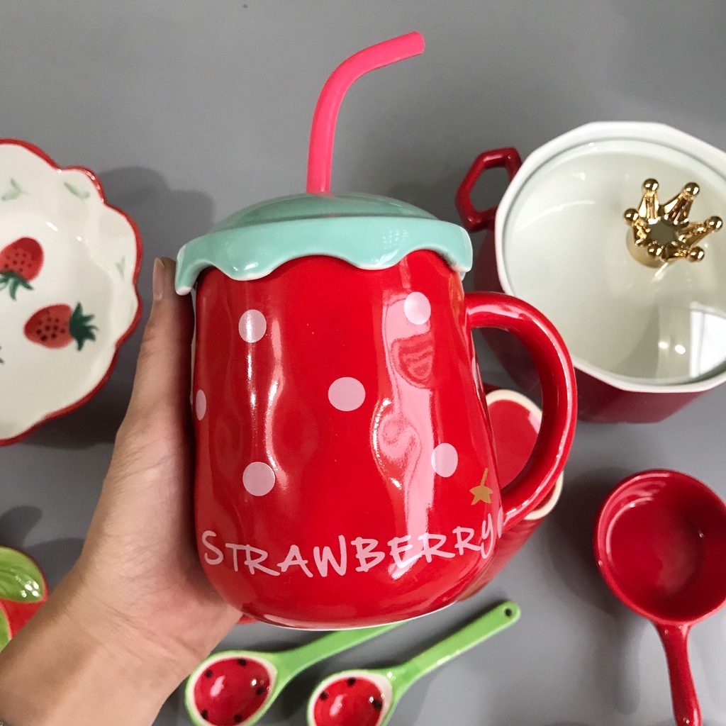 Set Bát Đĩa Đỏ Bát Ăn Cơm, Ăn Mì, Decor Bàn Ăn Dễ Thương