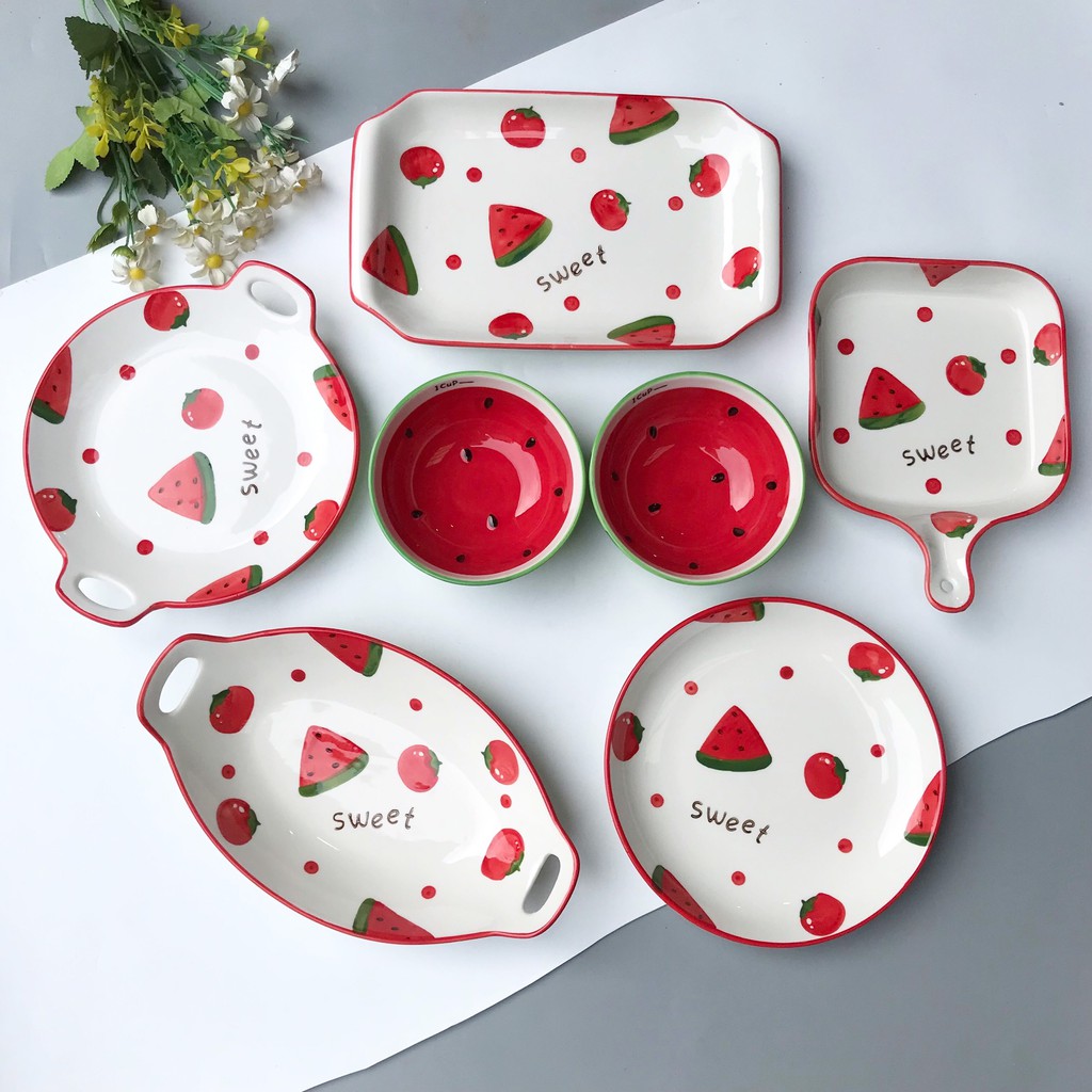 Set Bát Đĩa Dưa Hấu 6 Món, Ăn Cơm, Mì, Decor Bàn Ăn Dễ Thương