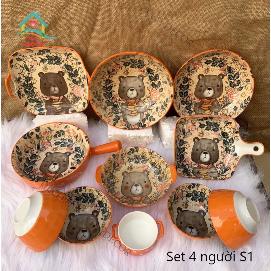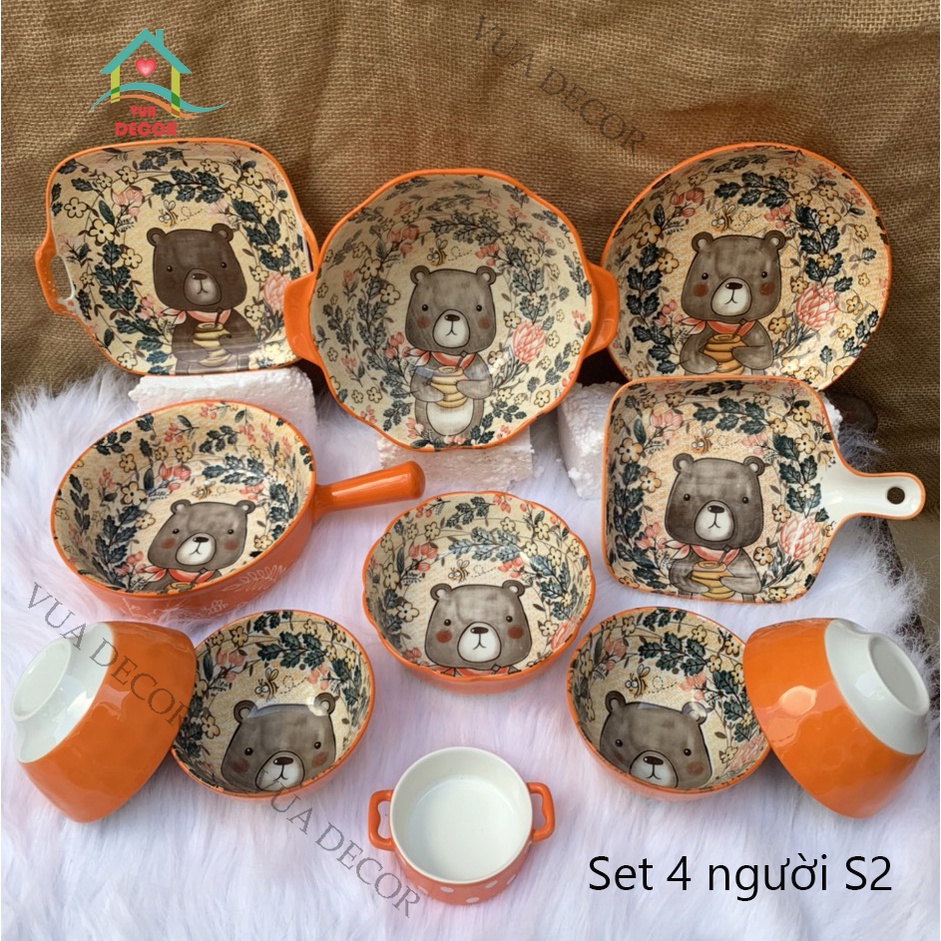 Set Bát Đĩa ⭐️Gấu Cam⭐️ Bát đĩa ăn cơm ăn mì, decor bàn ăn dễ thương S100