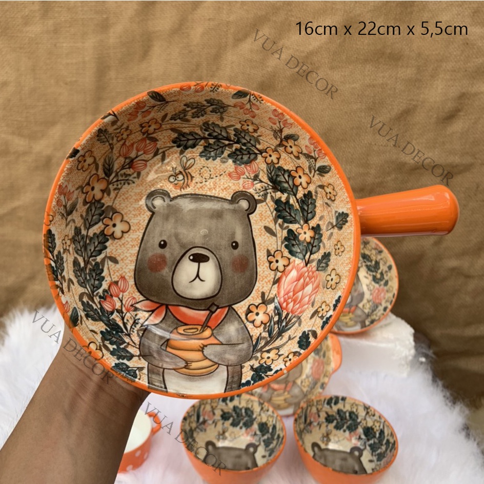 Tên Sản Phẩm: Set Bát Đĩa ⭐️Gấu Cam⭐️ Bát đĩa ăn cơm ăn mì, decor bàn ăn dễ thương S100- Chất liệu: GỐM SỨ cao cấp