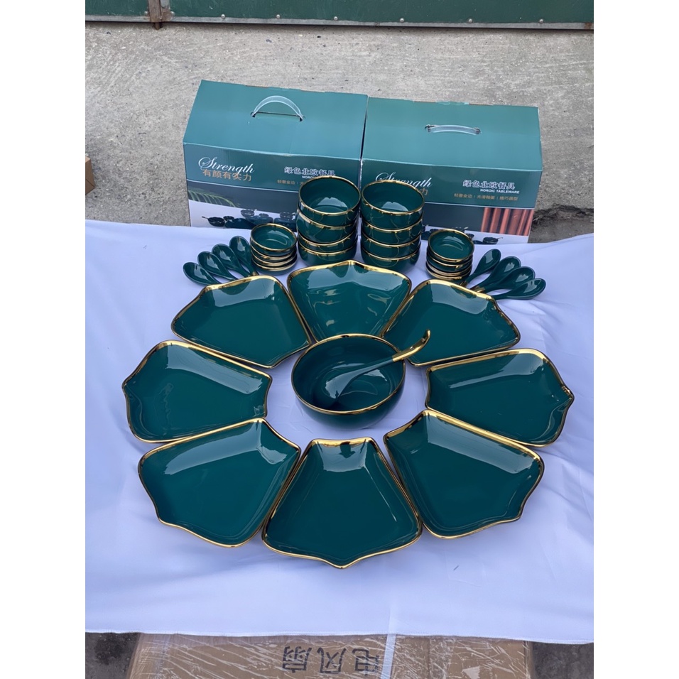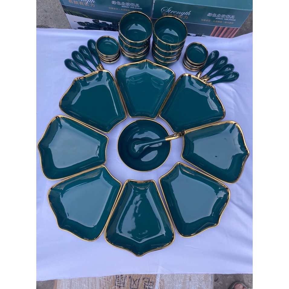 Nhà cửa & Đời sống > Bộ đồ bàn ăn > Tô || Set bát đĩa Hướng Dương 8 cánh lá me gốm sứ cao cấp, sang trọng, tinh tế, phù hợp với bữa ăn gia đình, bàn tiệcCòn hàng