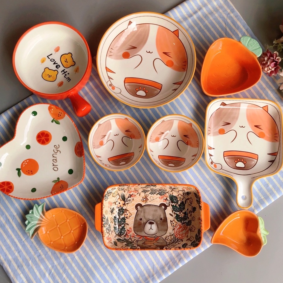 Nhà cửa & Đời sống > Bộ đồ bàn ăn > Tô || Set Bát Đĩa Màu Cam Bát sứ Ăn Cơm, ăn mì, decor bàn ăn dễ thươngCòn hàng
