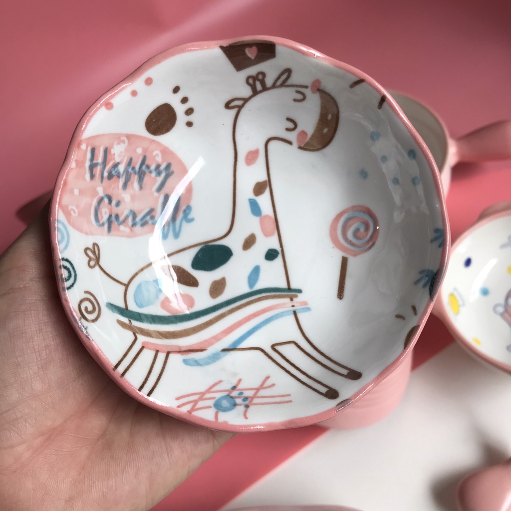 Set Bát Đĩa Màu Hồng Bát Ăn Cơm,Đĩa Sứ, Decor Bàn Ăn Dễ Thương