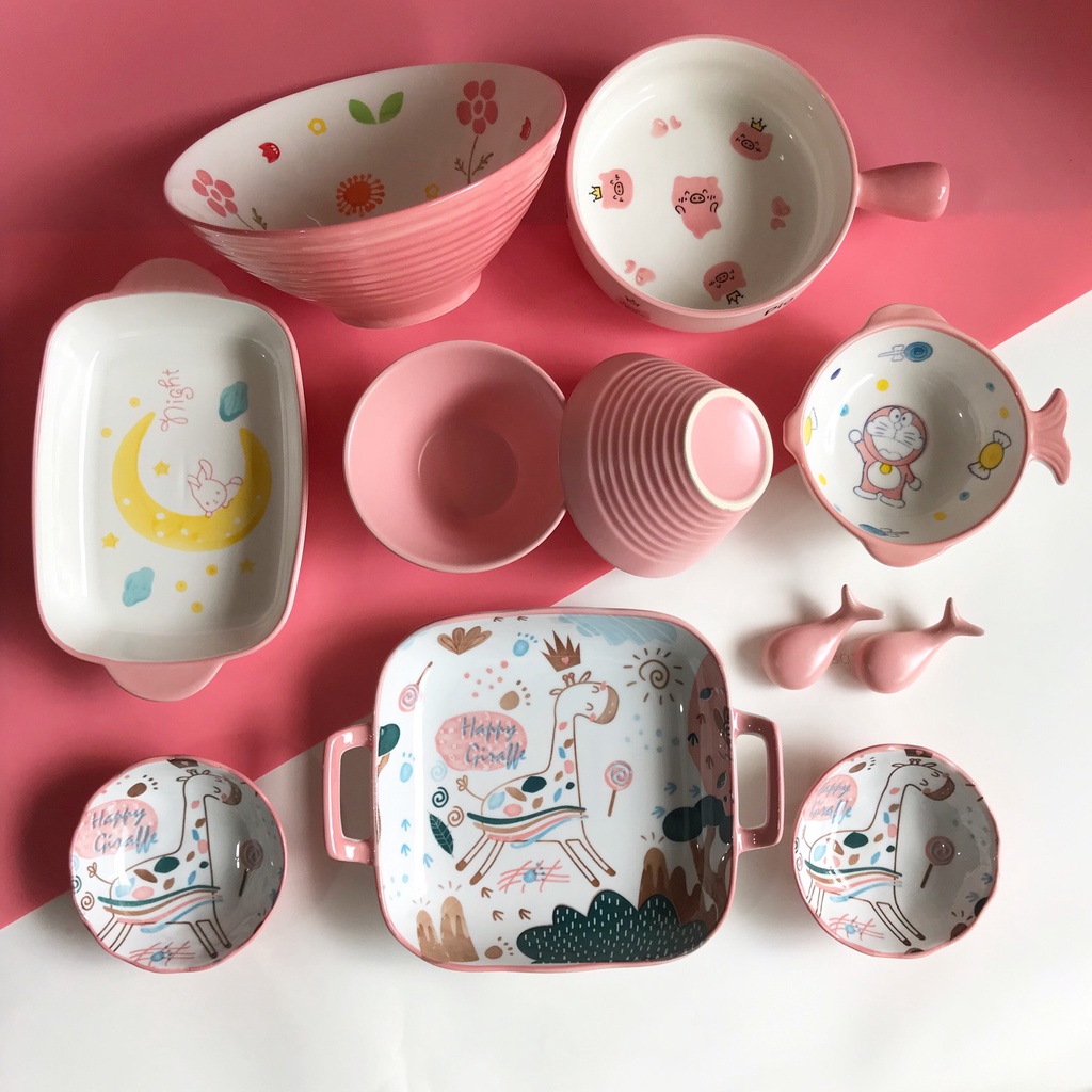 Nhà cửa & Đời sống > Bộ đồ bàn ăn > Dĩa || Set Bát Đĩa Màu Hồng Bát Ăn Cơm,Đĩa Sứ, Decor Bàn Ăn Dễ ThươngCòn hàng